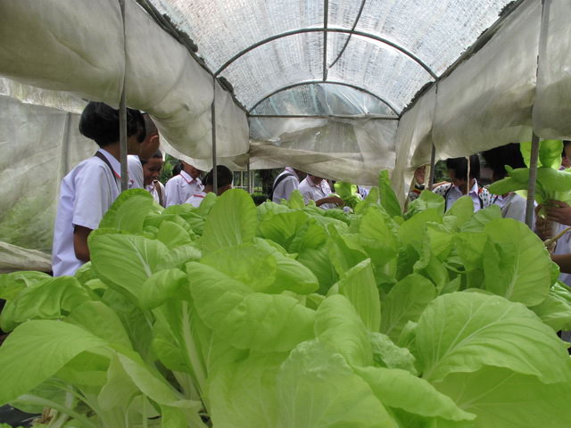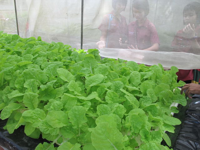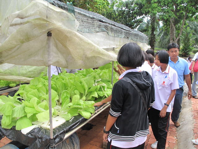 การปลูกผักไร้ดิน (Hydroponics) เช่น ผักกาด ผักคะน้า ผักบุ้ง รวมทั้งศึกษาระบบการให้น้ำผักต่างๆดูรูปภาพ